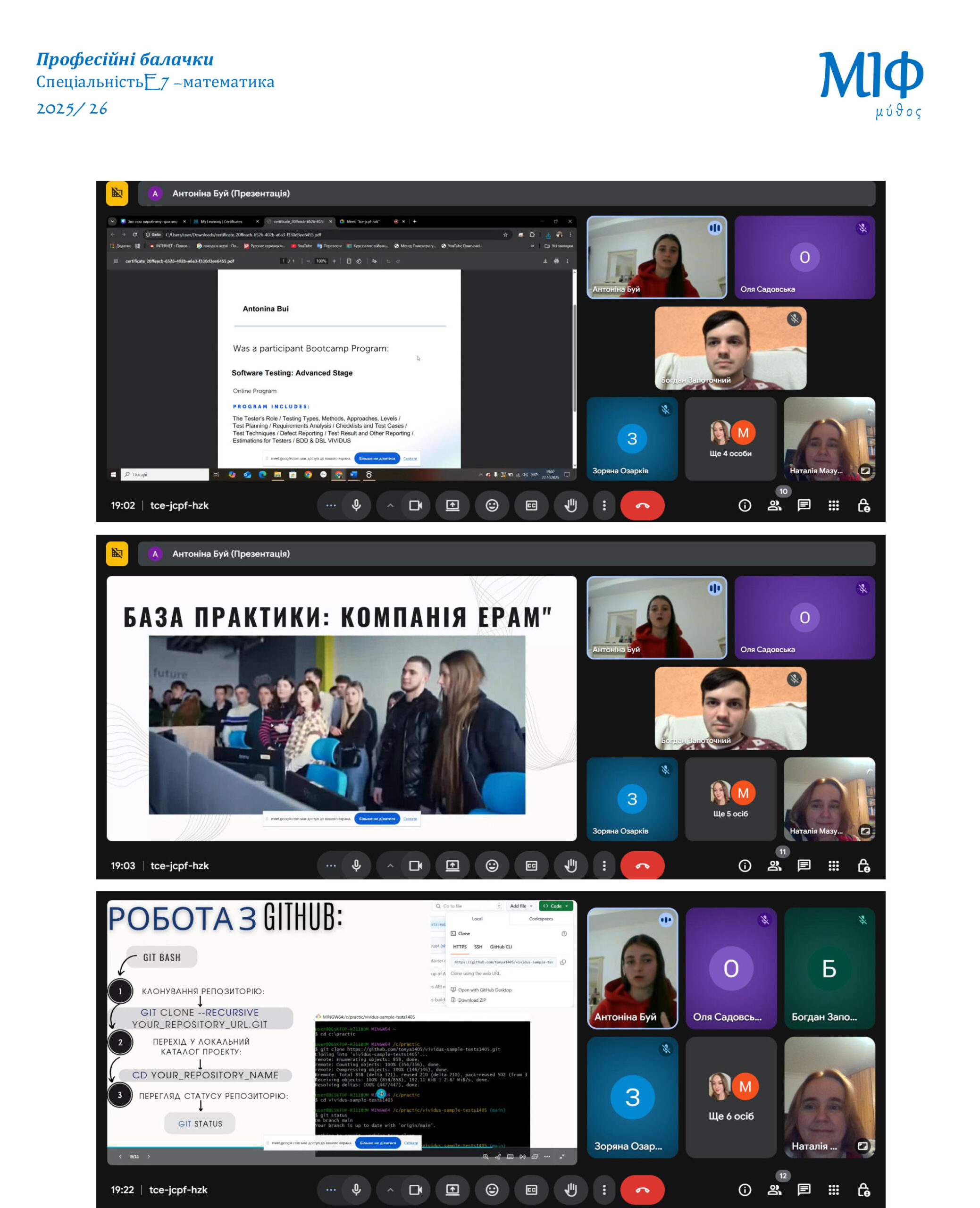 Зустріч з випускницею 2025 року бакалаврату спеціальності Е7 Математика Антоніною Буй минула невимушено. Тоня поділилася ще зовсім свіжим досвідом проходження практики в компанії EPAM, розповіла про труднощі, які виникали та способи їх подолання, а також про переваги та плюси такого виду практики.